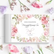 Księga na pamiątkowe wpisy z życzeniami od Waszych Gości. Wykonana w sztywnej, eleganckiej okładce, ozdobionej w dowolnym motywie.