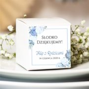 W cenie: indywidualny projekt graficzny karteczki z podziękowaniami, pudełeczko, wstążka, karteczka z podziękowaniem w formie naklejki