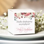 Pudełko wysyłamy w formie rozłożonej, do samodzielnego złożenia i naklejenia karteczki z podziękowaniami. W zestawie z pudełeczkiem jest dekoracyjna, kolorowa wstążka.