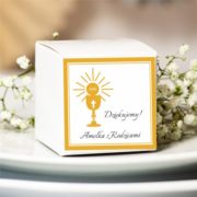 Pudełko wysyłamy w formie rozłożonej, do samodzielnego złożenia i naklejenia karteczki z podziękowaniami. W zestawie z pudełeczkiem jest dekoracyjna, kolorowa wstążka.