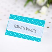 Elegancko wykonane winietki z delikatną grafiką, idealne na dziecięce uroczystości.