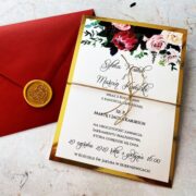 Proces złocenia wykonujemy ręcznie, dlatego w niektórych przypadkach uszlachetniony nadruk może nie pokryć tekstu w 100%. Zmiany te są jednak tak małe, że nie wpływają na wygląd całego zaproszenia