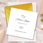 W cenie: indywidualny projekt graficzny zaproszenia, biała koperta, zaproszenie, personalizacja zaproszenia