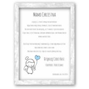 Zawieszka na weselne butelki z alkoholem. Tekst zawieszki drukowany jest na papierze gładkim satynowym bądź na fakturowanym. Każda zawieszka posiada dekoracyjną wstążkę. Zawieszki wykonujemy na kształt kółłka bądź prostokąta.